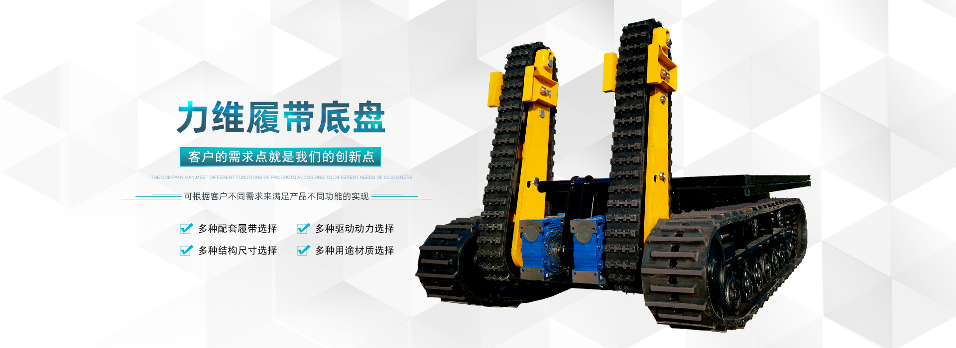 德州力維智能裝備有限公司成立于2009年,是一家以特種橡膠履帶為核心技術(shù),從事履帶動(dòng)力系統(tǒng)研發(fā)及相關(guān)特種車(chē)輛、裝備制造的高新技術(shù)企業(yè)。公司產(chǎn)品涉及軍工、工業(yè)、農(nóng)業(yè)、生活家居等行業(yè)。 公司秉承“因?yàn)閷?zhuān)注,所以超越”的商業(yè)理念,“科技創(chuàng)造美好未來(lái)”的企業(yè)發(fā)展信念,以不斷進(jìn)取、勇于創(chuàng)新的企業(yè)精神,不斷拓展與完善產(chǎn)業(yè)鏈,客戶(hù)的需求點(diǎn)就是我們的創(chuàng)新點(diǎn)。力維智能裝備,您身邊的履帶裝備制造商。